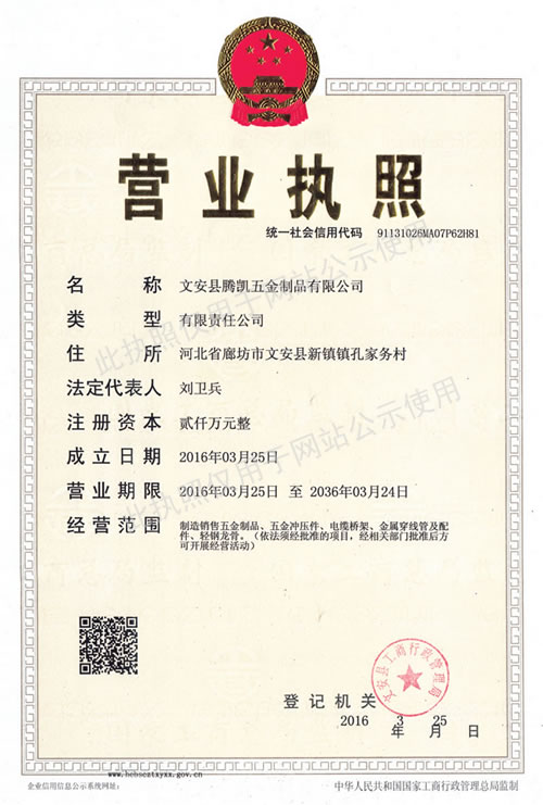 文安縣騰凱五金制品有限公司創(chuàng)建于2006年,是電纜橋架制造廠商,位于河北省文安縣新鎮(zhèn)工業(yè)區(qū),東連京開線106國道,北接津保高速公路,背靠京九大動(dòng)脈,地處北京、天津、保定三角地帶,交通便捷,通訊發(fā)達(dá)。